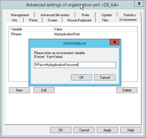 Add a new variable and its value. Confirm with OK.